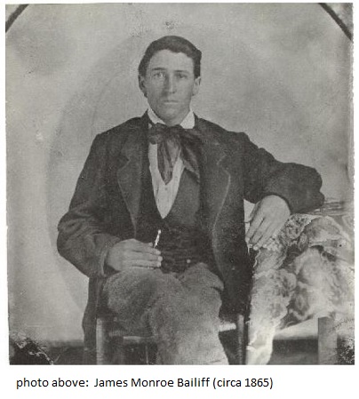 James Monroe Bailiff was born on December 2, 1845 near Temperance Hall, DeKalb County, Tennessee. He descended from a slaveholding family. The Bailiff slaves had been freed by his grandfather, Thomas Bailiff, by 1854.